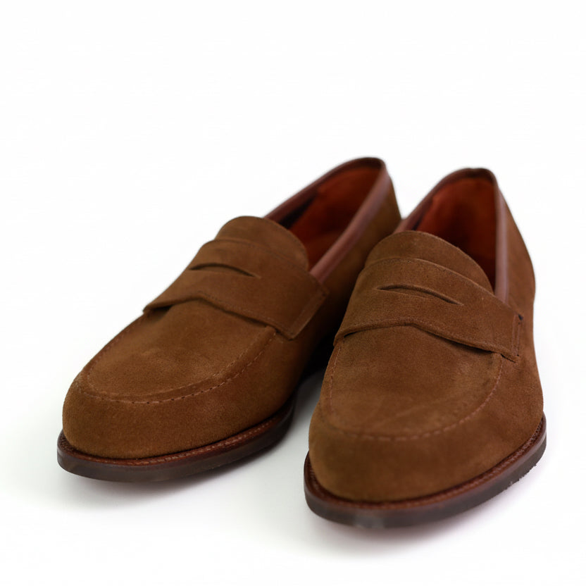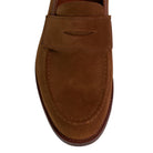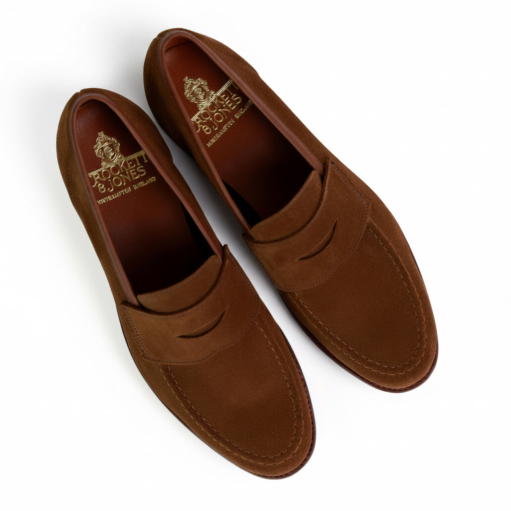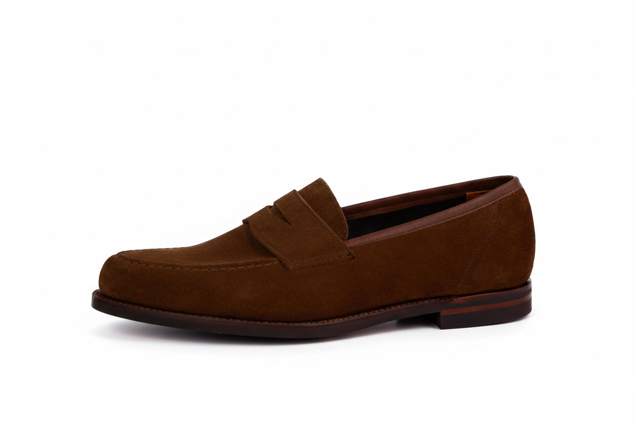 Dieser exklusive Herren-Loafer von Crockett & Jones verkörpert britische Eleganz in ihrer reinsten Form und ist die ideale Wahl für den modernen Gentleman. Gefertigt aus feinstem, ungefüttertem Veloursleder in einem satten Braunton, bietet der Schuh eine außergewöhnliche Weichheit und passt sich bereits beim ersten Tragen perfekt an die Fußform an. Das ungefütterte Design sorgt zudem für eine natürliche Atmungsaktivität und ein leichtes Tragegefühl, was ihn besonders für die wärmere Jahreszeit qualifiziert.