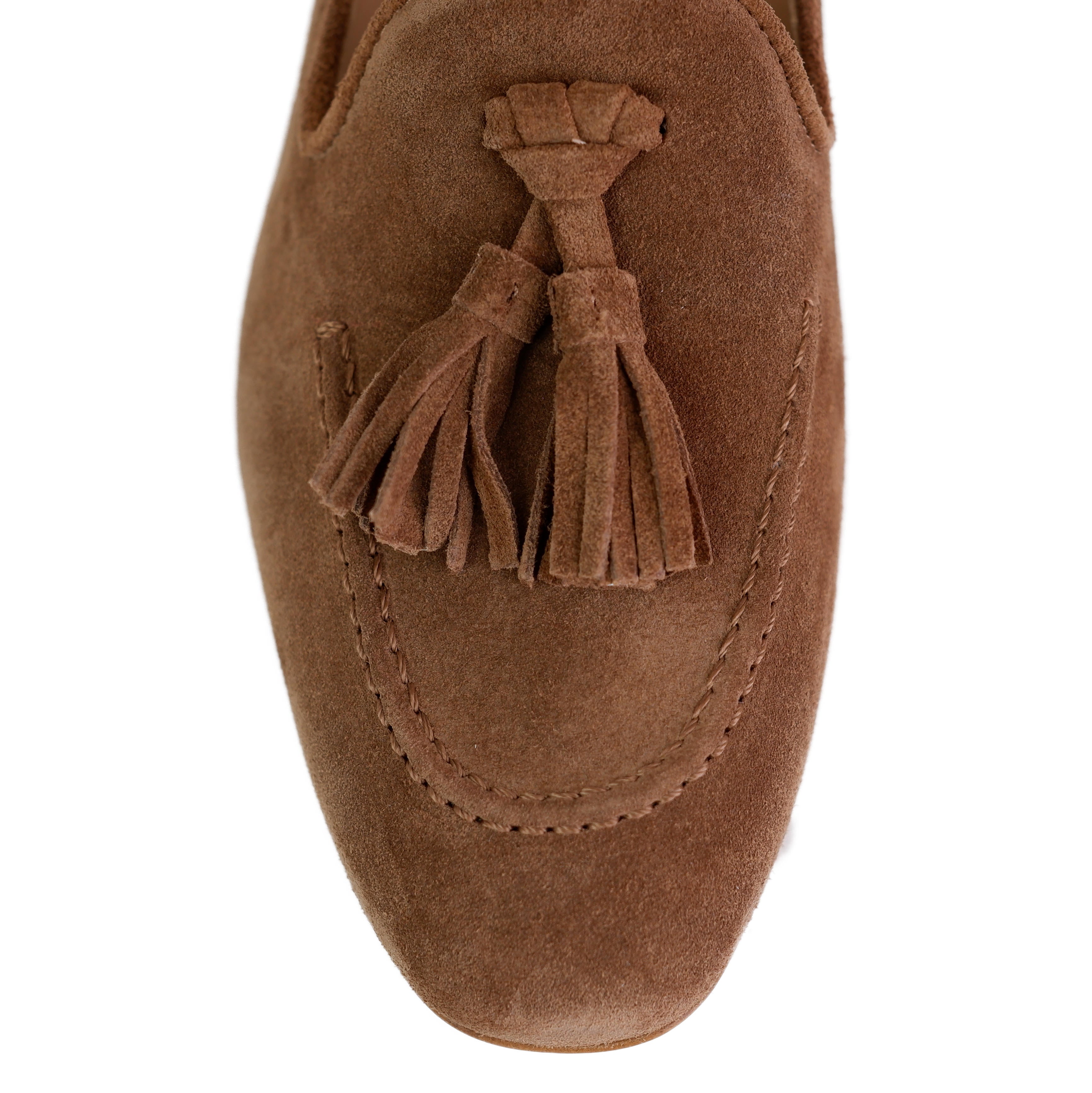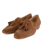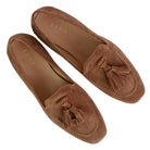 Diese luxuriösen Slipper unserer Hausmarke Fera bringen pure italienische Nonchalance in Ihre Garderobe und sind die perfekte Wahl für einen stilsicheren, sommerlichen Auftritt. Gefertigt aus erstklassigem, samtweichem Veloursleder, schmiegt sich das Modell sanft an den Fuß an und verspricht durch die hochwertige Verarbeitung „Made in Italy“ ein federleichtes Tragegefühl. Das markante Design wird durch die großzügigen Doppel-Tassels auf dem Spann definiert, die dem klassischen Slipper-Schnitt eine verspielte und zugleich extrem edle Note verleihen.