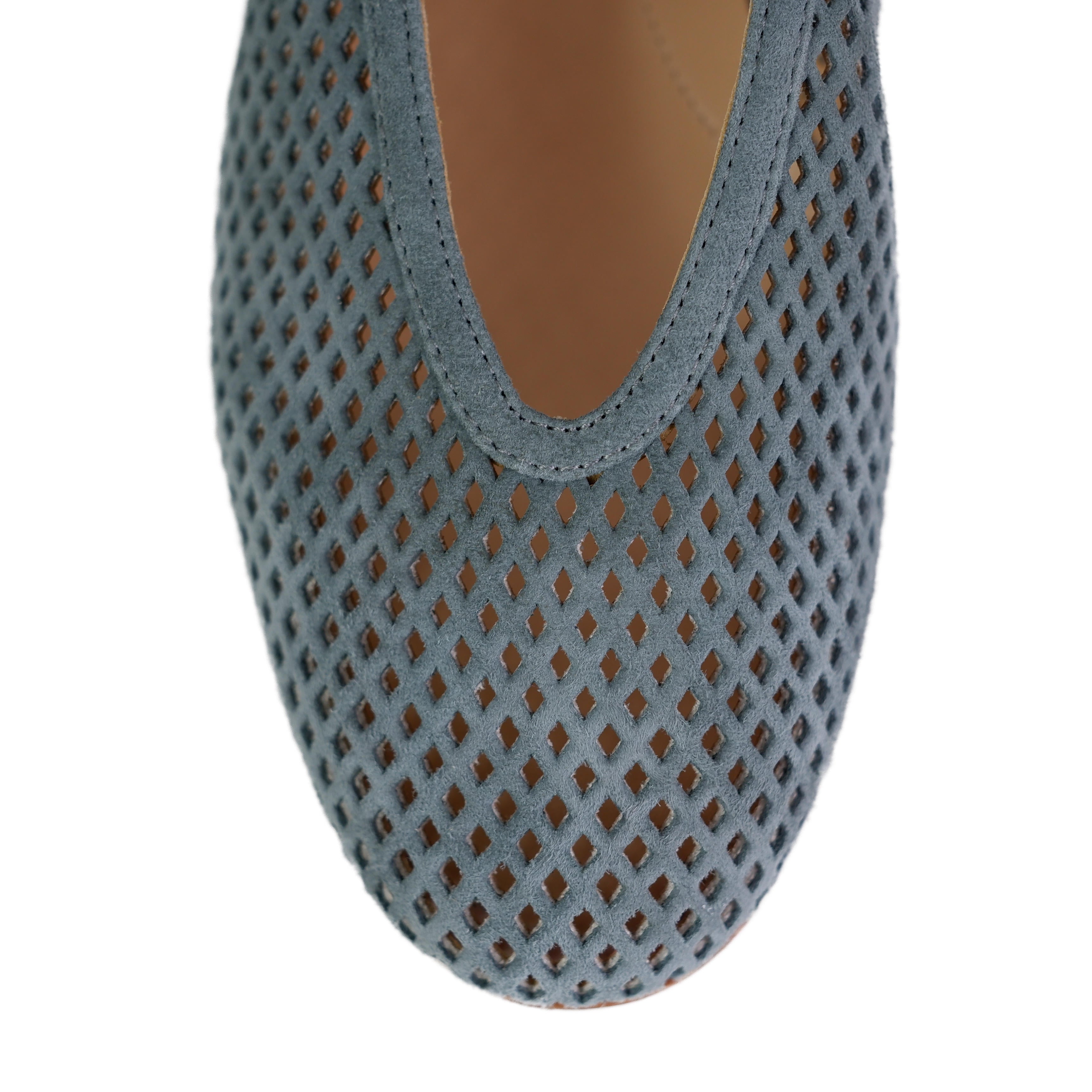 Diese exklusiven Ballerinas unserer Hausmarke Fera bringen echte italienische Handwerkskunst direkt in Ihren Schuhschrank und verkörpern puren Sommer-Chic. Das Modell besticht durch sein außergewöhnliches Design aus feinstem Veloursleder, das durch eine präzise Laser-Cut-Perforierung eine luftige und zugleich skulpturale Gitter-Optik erhält. Diese feinen Durchbrüche sorgen nicht nur für ein angenehmes Fußklima an heißen Tagen, sondern verleihen dem Schuh auch eine moderne, textile Leichtigkeit.