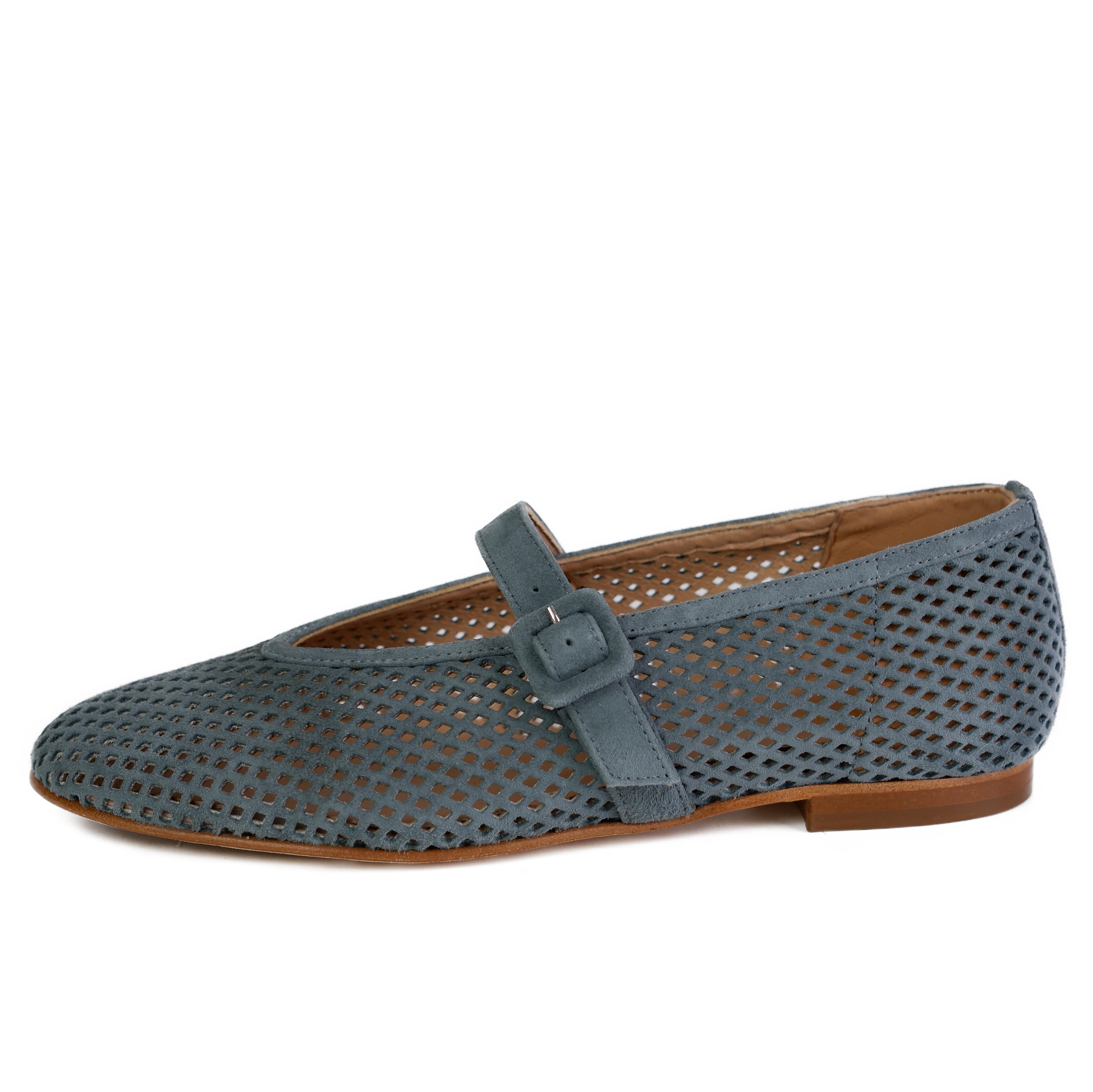 Ein besonderer Eyecatcher ist der schmale Riemen über dem Spann, der mit einer passend bezogenen Schnalle für eine feminine Note und optimalen Halt sorgt. Die flache Silhouette und die hochwertige Verarbeitung „Made in Italy“ garantieren ein unvergleichlich sanftes Tragegefühl, während die weiche Textur des Materials den luxuriösen Charakter unterstreicht. Ob zum leichten Sommerkleid oder zur lässigen Culotte – dieser Schuh von Fera ist das perfekte Piece für Frauen, die Wert auf handwerkliche Details und einen frischen, unangestrengten Look legen.