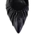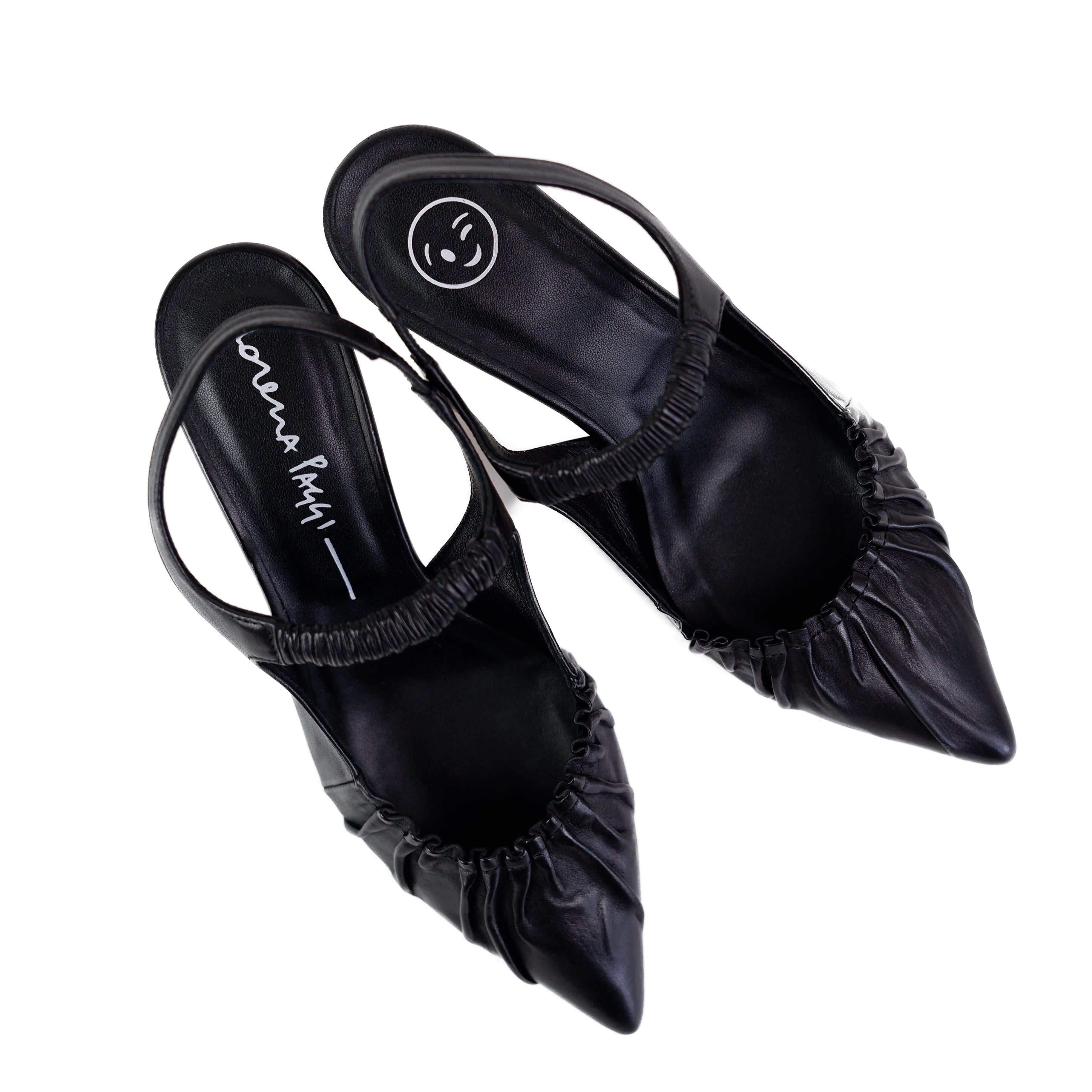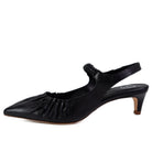 Dieser elegante Slingback-Pumps von Lorena Paggi in zeitlosem Schwarz ist die perfekte Wahl für Damen, die eine raffinierte Mischung aus klassischer Weiblichkeit und modernem Design suchen. Gefertigt aus hochwertigem Glattleder, besticht der Schuh durch seine spitz zulaufende Silhouette und eine kunstvolle Raffung im vorderen Bereich, die dem Modell eine weiche, fast textile Dynamik verleiht. Ein besonderes Detail ist der elastisch gearbeitete Riemen über dem Spann, der nicht nur für einen sicheren Halt sorgt, sondern auch einen modischen Akzent im Mary-Jane-Stil setzt.