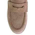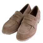 Dieser stilvolle Slipper von Lorena Paggi besticht durch seine natürliche Eleganz und eine besonders weiche Haptik. Das hochwertige Veloursleder in einem warmen Taupe-Ton verleiht dem Schuh eine sanfte Ausstrahlung und macht ihn zu einem vielseitigen Kombinationstalent für gehobene Casual-Looks oder entspannte Business-Outfits.