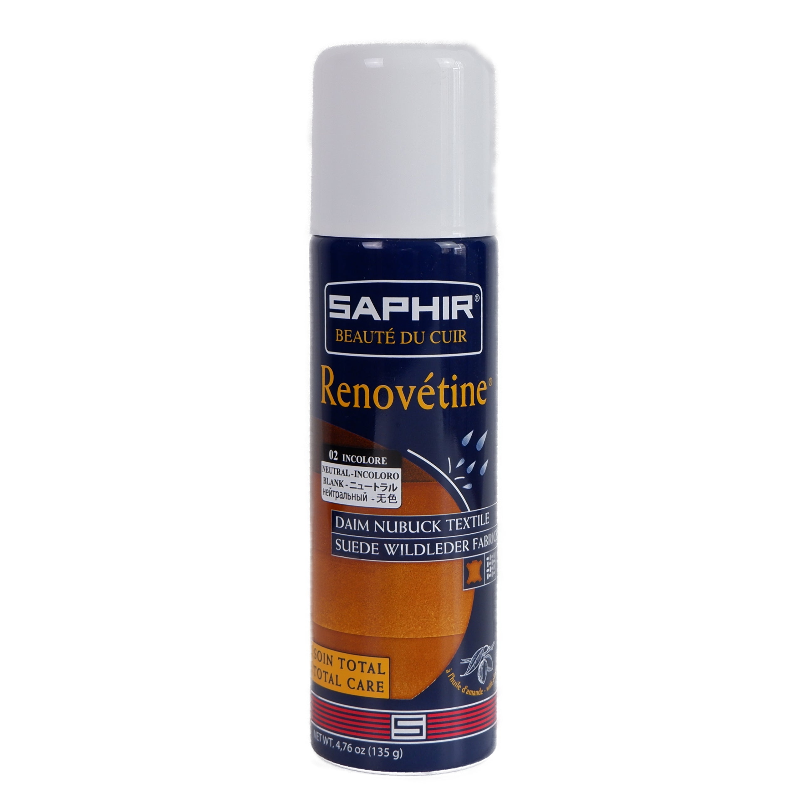Saphir Rénovétine Aerosol für die Pflege von Wildleder und Nubuk. Reinigt, frischt die Farbe auf und imprägniert Wildleder, Nubuk und "Tex"-Materialien. Es gibt eine stark färbende Variante sowie eine farblose. Anwendungshinweis: Vorher mit einer Messingbürste für Wildleder und Nubuk abbürsten. Eine 200-ml-Dose reicht für mehrere Anwendungen bei einem Paar Schuhe. Testen Sie das Produkt immer zuerst an einer unauffälligen Stelle. Dank der Aluminium-Sprühdose bleibt das Produkt lange haltbar, ohne Auslaufen oder Qualitätsverlust durch Oxidation.